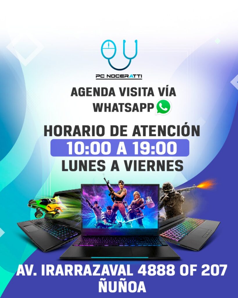 ¿Tu equipo está lento, presenta fallas o necesitas una actualización? En Pc Noceratti somos expertos en servicio técnico y soluciones informáticas en Ñuñoa. Cuéntanos tu problema y recibe una asesoría rápida y garantizada para recuperar el rendimiento de tu PC.